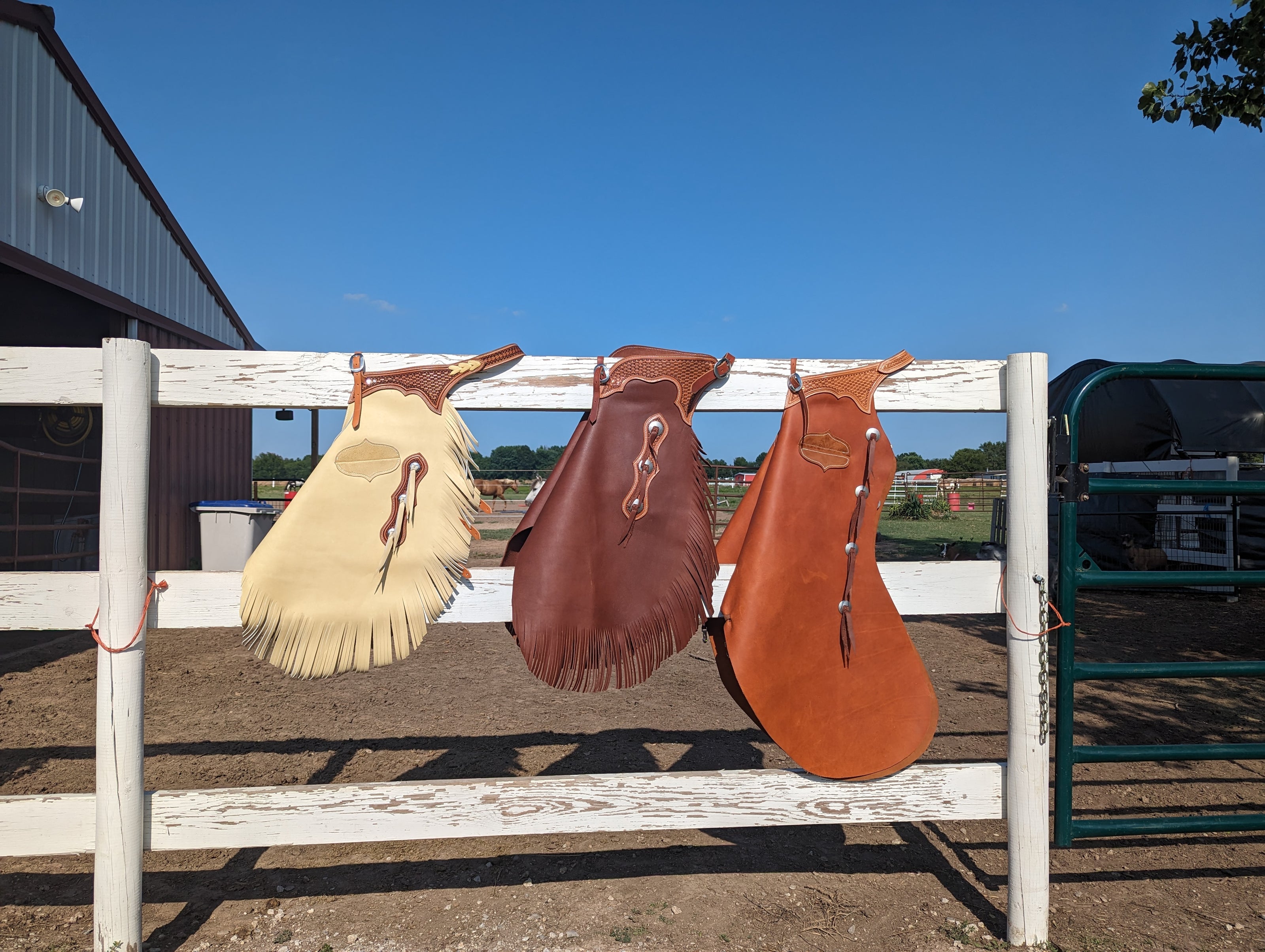 Shotguns, Chinks, BatwingsCustom chaps, tailor made to your measurements and style. We offer basic working chaps, as well as show chaps. Get in touch - we'd love to make you a set.